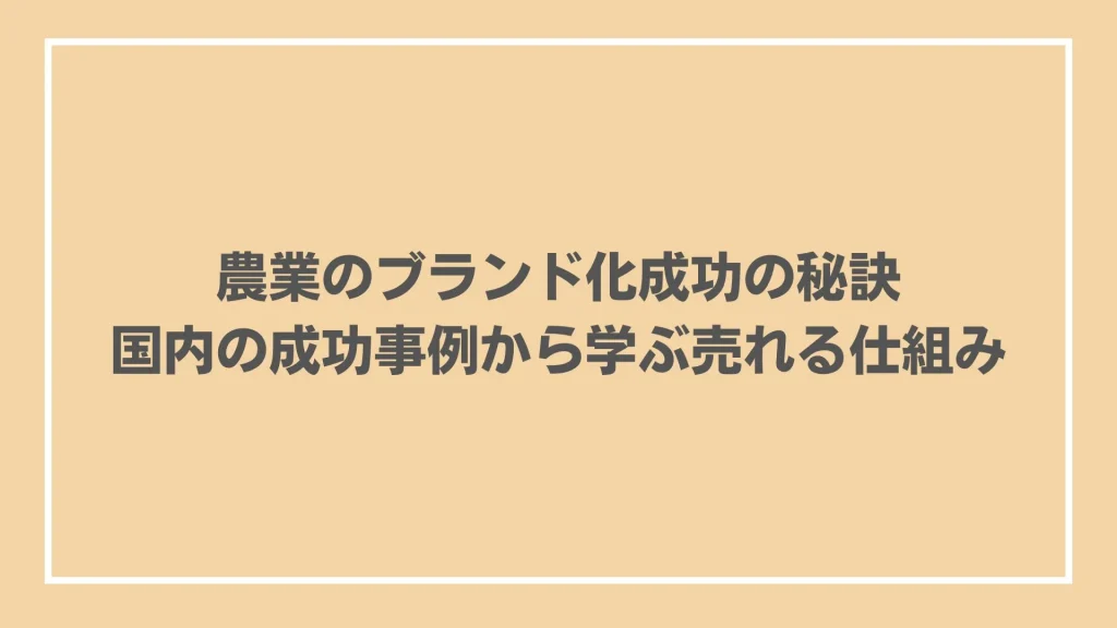 3. 農業ブランド化の成功事例にはどのようなものがありますか?