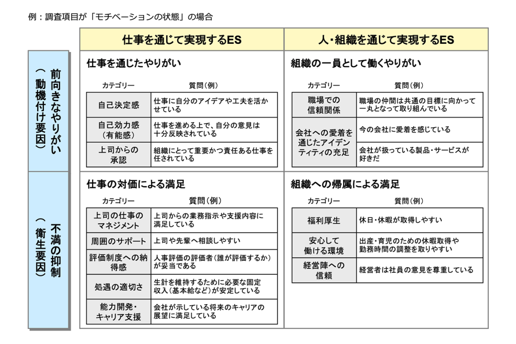 職場アンケートでは、従業員の職場環境や仕事内容、福利厚生に関する意見を収集します。具体的には、オフィスの物理的な環境やチーム間のコミュニケーション、仕事の負荷や裁量権のバランスなど、多岐にわたる項目が対象となります。従業員満足度を測る上で、これらの要素は相互に関連しており、総合的な評価が求められます。