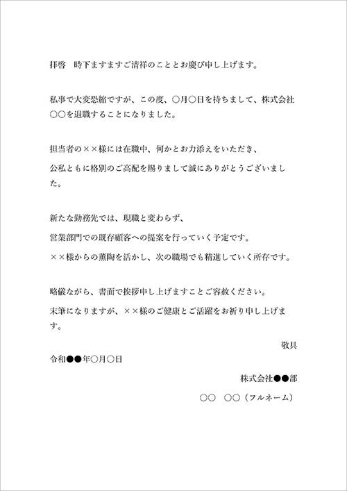 具体的には、「この度、〇月〇日をもって退社することになりました」のように事実を明確に伝え、「在職中は大変お世話になり、心から感謝しております」と感謝の意を示します。さらに、「今後ともご指導のほどよろしくお願い申し上げます」などの一文を加えることで、円満な関係をアピールできます。