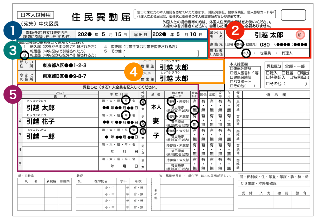 住民異動届の記入例はありますか?