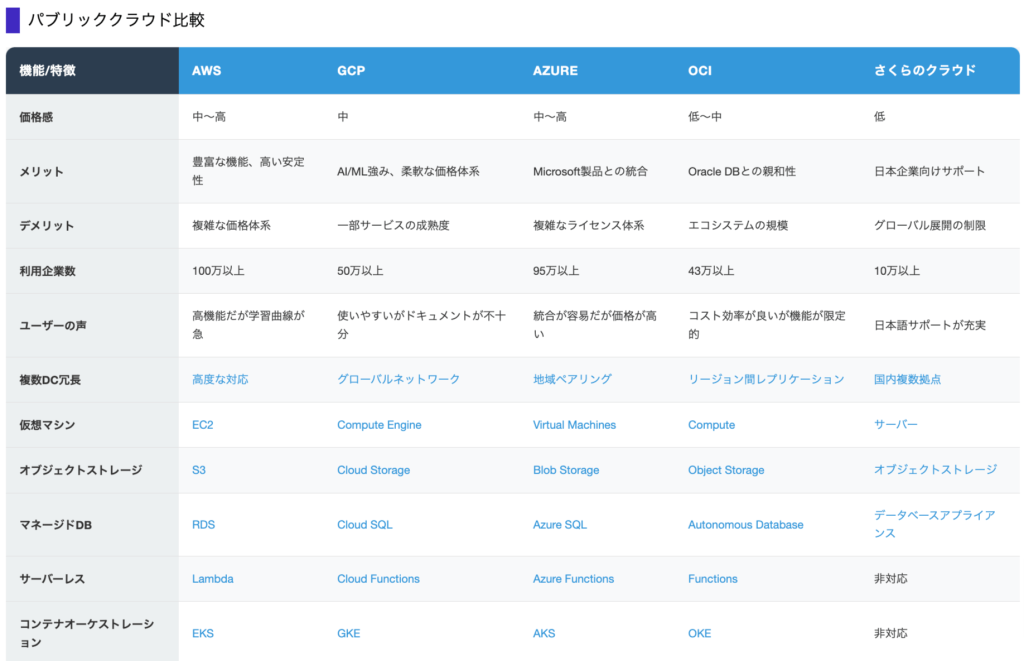 AWS・Azure・GCPの主要な違いは何ですか?