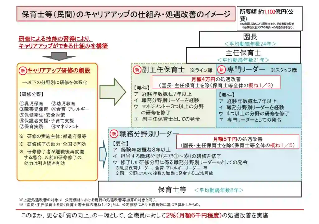 キャリアアップを目指す場合、10年目以降の保育士は「園内研修の企画実施」や「専門分野の知識深化」など、より高いレベルの目標設定が求められます。目標達成に向けた継続的なスキルアップが、組織全体の保育品質向上にもつながることを意識しましょう。