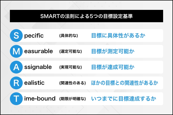 SMART原則は、効果的な目標設定のためのフレームワークとして広く活用されています。この原則は、具体的(Specific)、測定可能(Measurable)、達成可能(Achievable)、関連性(Relevant)、期限(Time-bound)の5つの要素で構成されており、部下育成の目標設定においても重要な指針となります。
